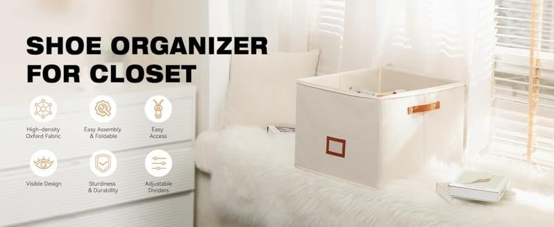 VERSATILE STORAGE SOLUTION: Not just for shoesour multifunctional clost storage organizer can also holdclothing, blankets, socks, hats, toys, and other householdessentials. Suitable for closets, entryways, bedrooms,living rooms, laundry rooms, garages, and campers. Theshoe case bin meets a variety of storage needs, helpingyou to keep your home clean and tidy